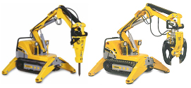 最新一代遙控機械人 , 它利用不同配件在鉗口張開與閉合之時 , 巨大的破碎力將鋼筋混凝土夾碎,同時可剪斷鋼筋。高頻打鎥炮機,具有普通炮機及人力可以比擬的功效。 無線遙控操作:比一般手控、線控更顯靈活,倍覺安全。 |