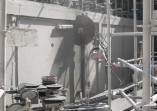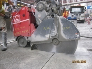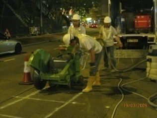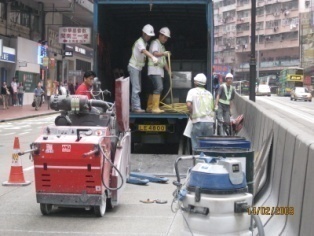 13m長的人行路桥因改建將須被拆除,先進鑽切採用靜音鏈切方法...